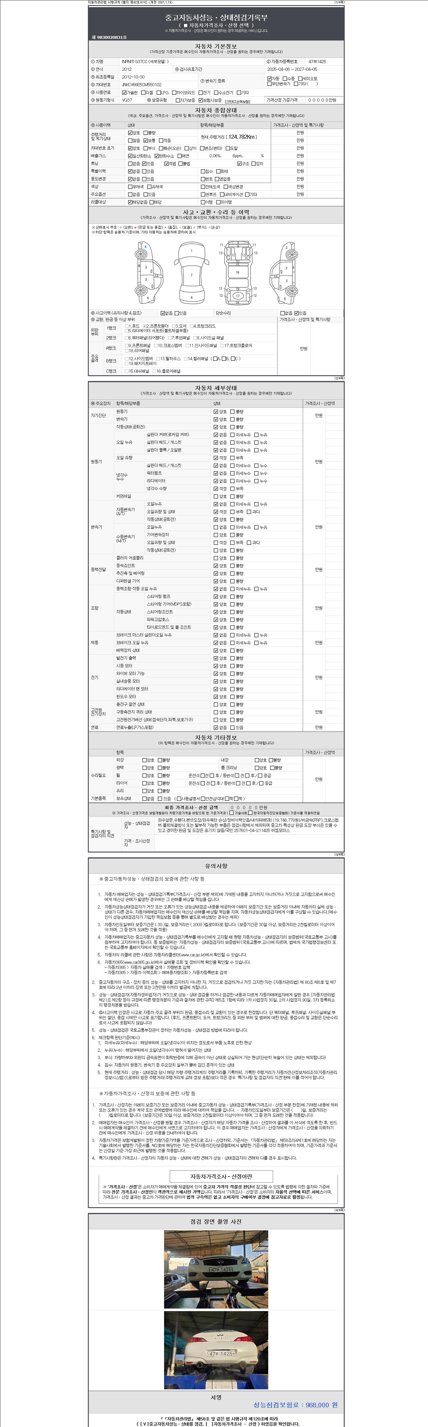 - 2. 차량 등록증이나 성능점검지 등을 상담자에게 요청및 확인하시고 사전에 미리 점검 하시기를 권유드립니다.