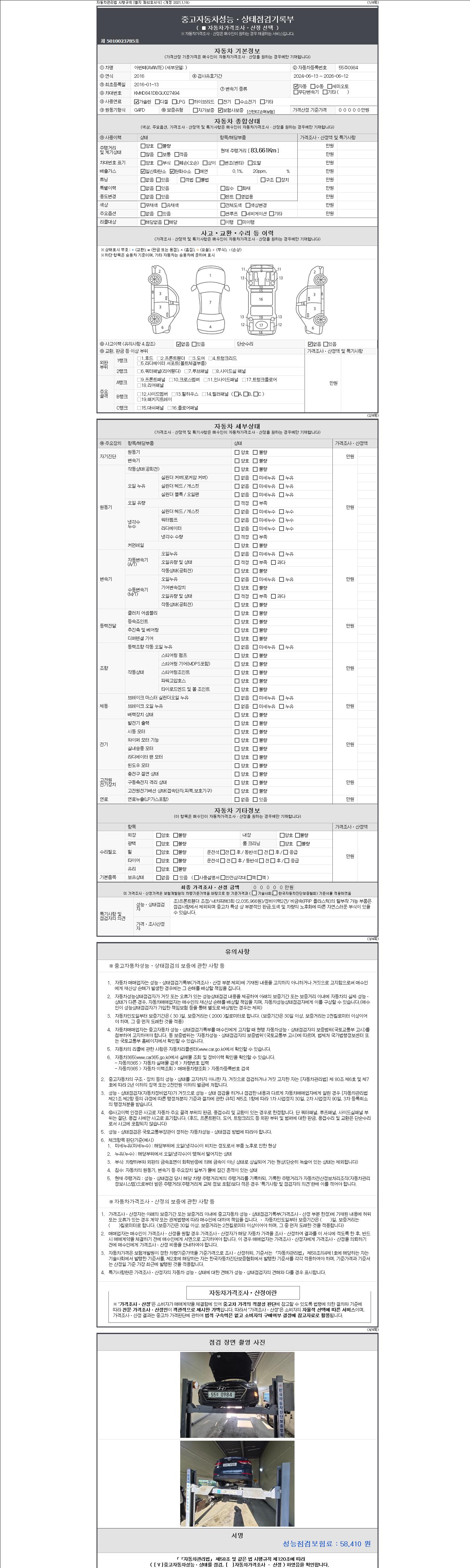 - 2. 차량 등록증이나 성능점검지 등을 상담자에게 요청및 확인하시고 사전에 미리 점검 하시기를 권유드립니다.