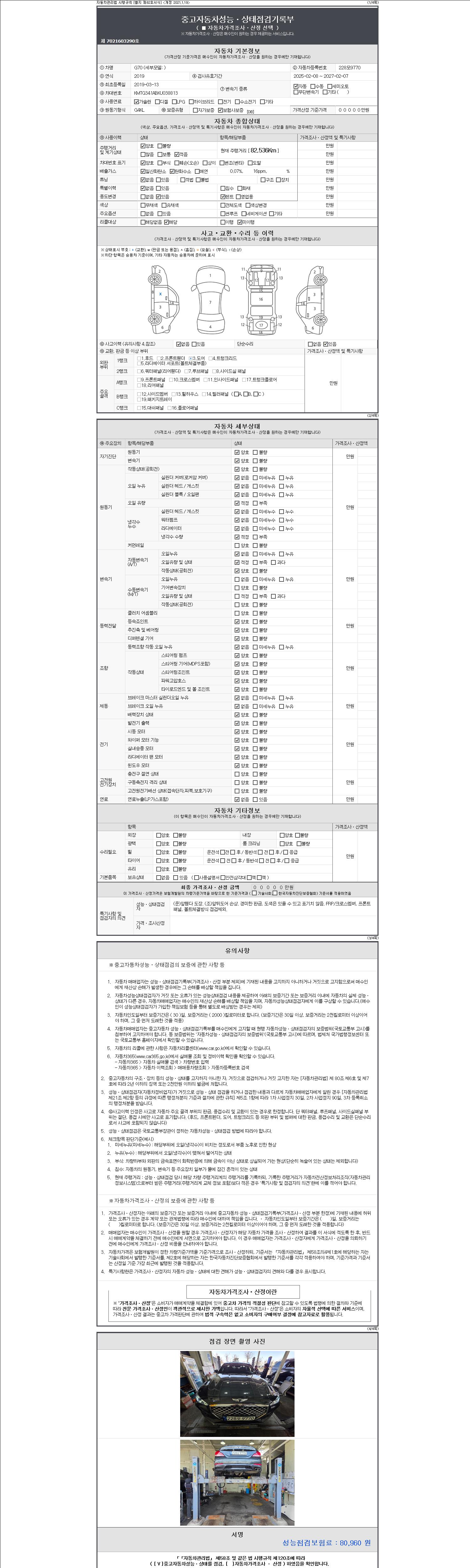 - 사고유무 : 성능기록부 참조