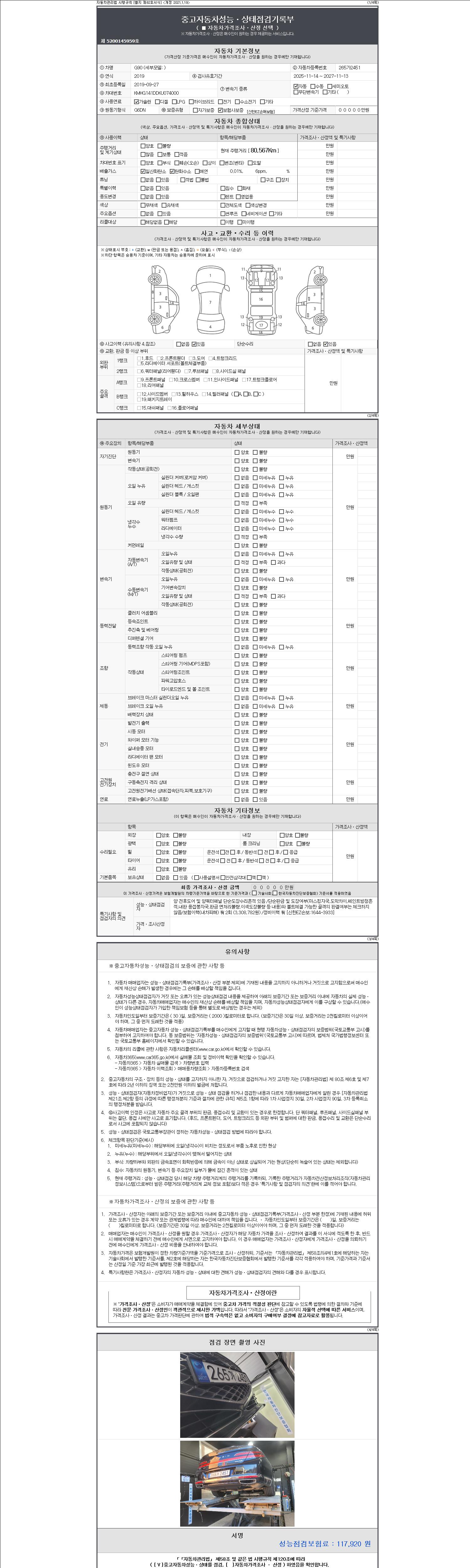 - 2. 차량 등록증이나 성능점검지 등을 상담자에게 요청및 확인하시고 사전에 미리 점검 하시기를 권유드립니다.