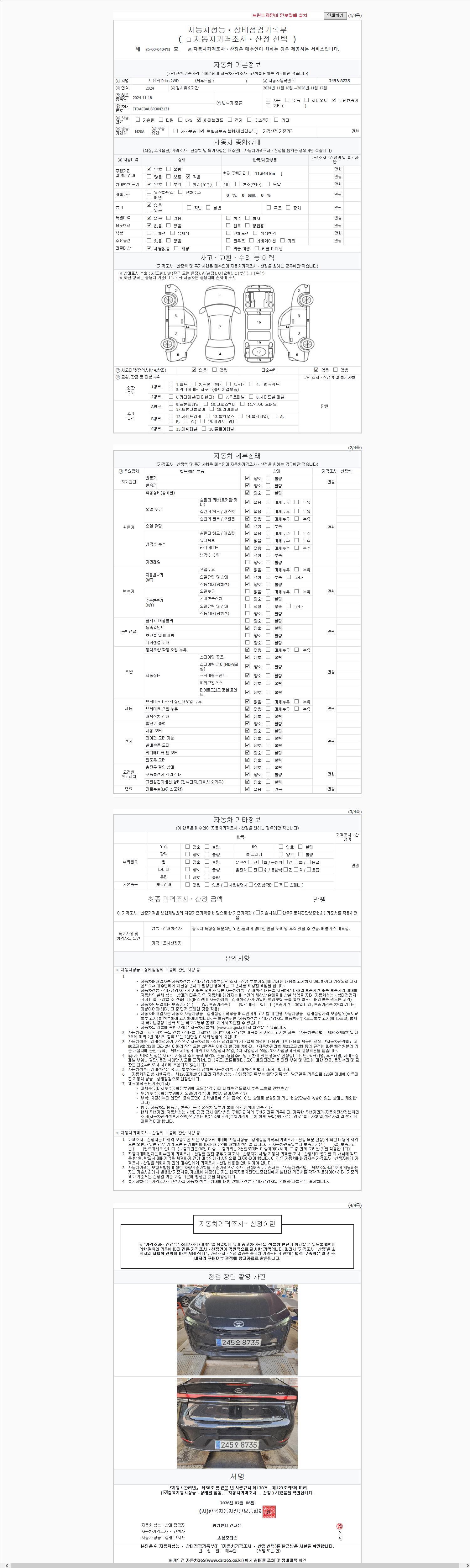 - 사고유무 : 성능기록부 참조