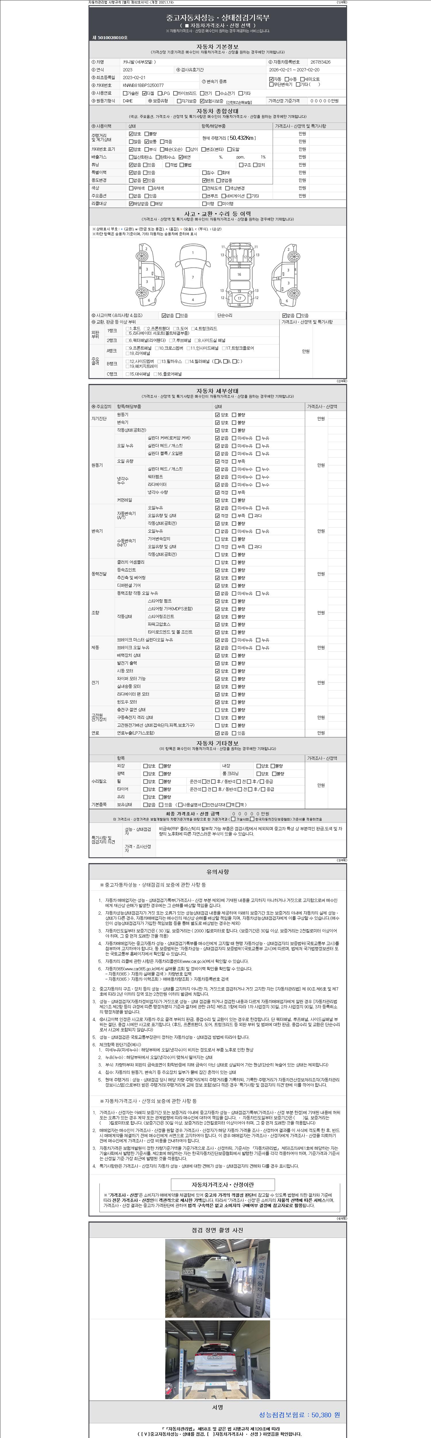 - 2. 차량 등록증이나 성능점검지 등을 상담자에게 요청및 확인하시고 사전에 미리 점검 하시기를 권유드립니다.