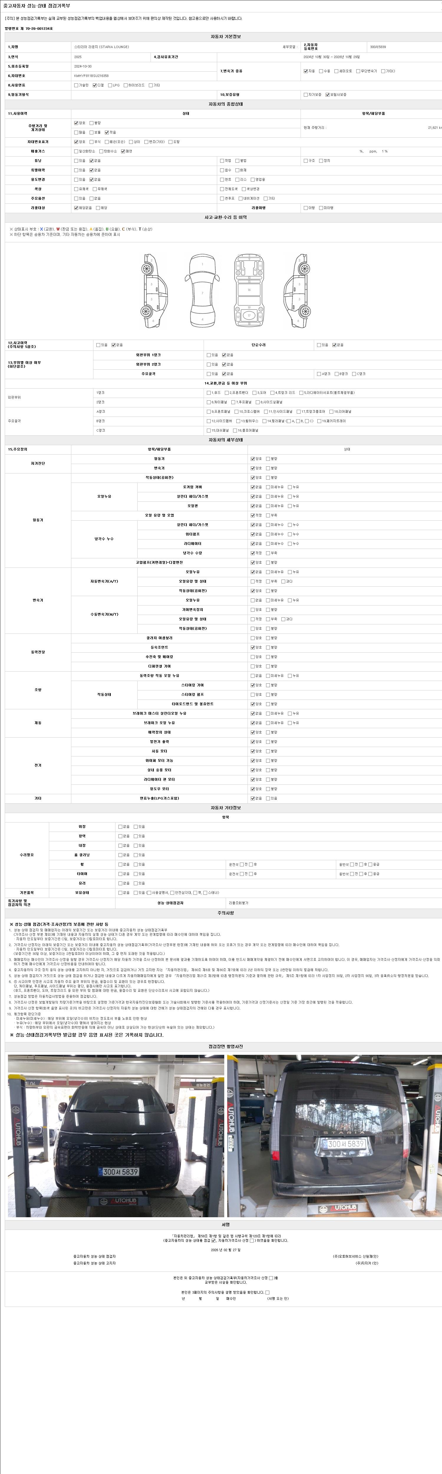 | 주행거리 | 21,621 km | 차량번호 | 300서5839 | 사고유무 | 성능기록부 참조 | 제시번호 | 제 2147483647 호 |