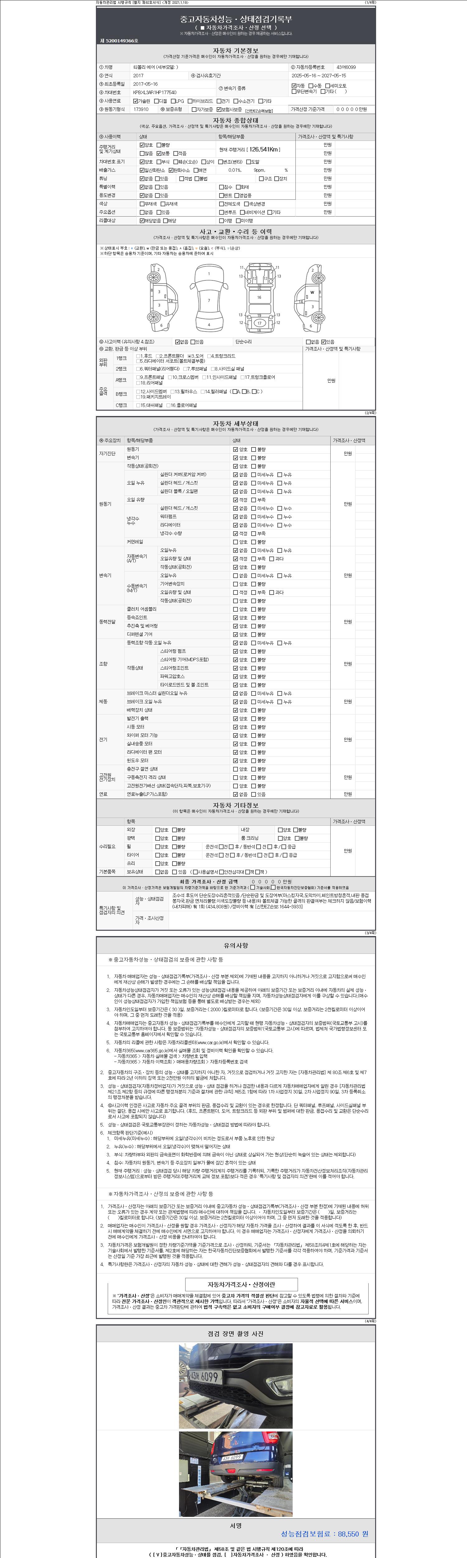 - 사고유무 : 성능기록부 참조