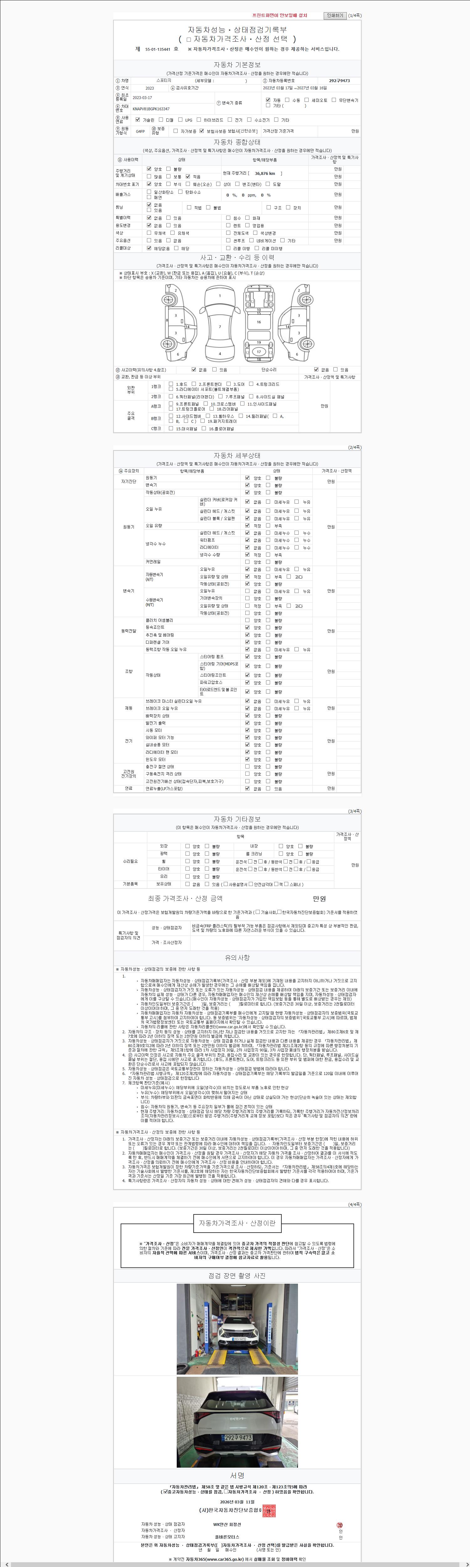 | 주행거리 | 36,876 km | 차량번호 | 292구9473 | 사고유무 | 성능기록부 참조 | 제시번호 | 제 2147483647 호 |